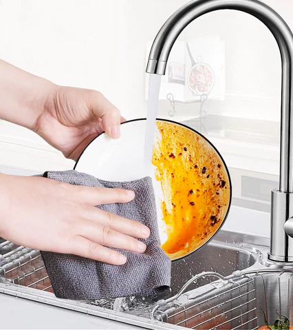 Bu etkileyici mikrofiber bez sayesinde tabaklarınızdaki inatçı yemek ve yağ kalıntıları artık sorun olmaktan çıkıyor. Yoğun dokusu, kirleri yüzeye zarar vermeden nazikçe temizlerken, bezin kendisi de kolayca durulanarak yeniden tertemiz hale gelir. Her kullanımda ilk günkü performansıyla parlayan bir temizlik sunar.